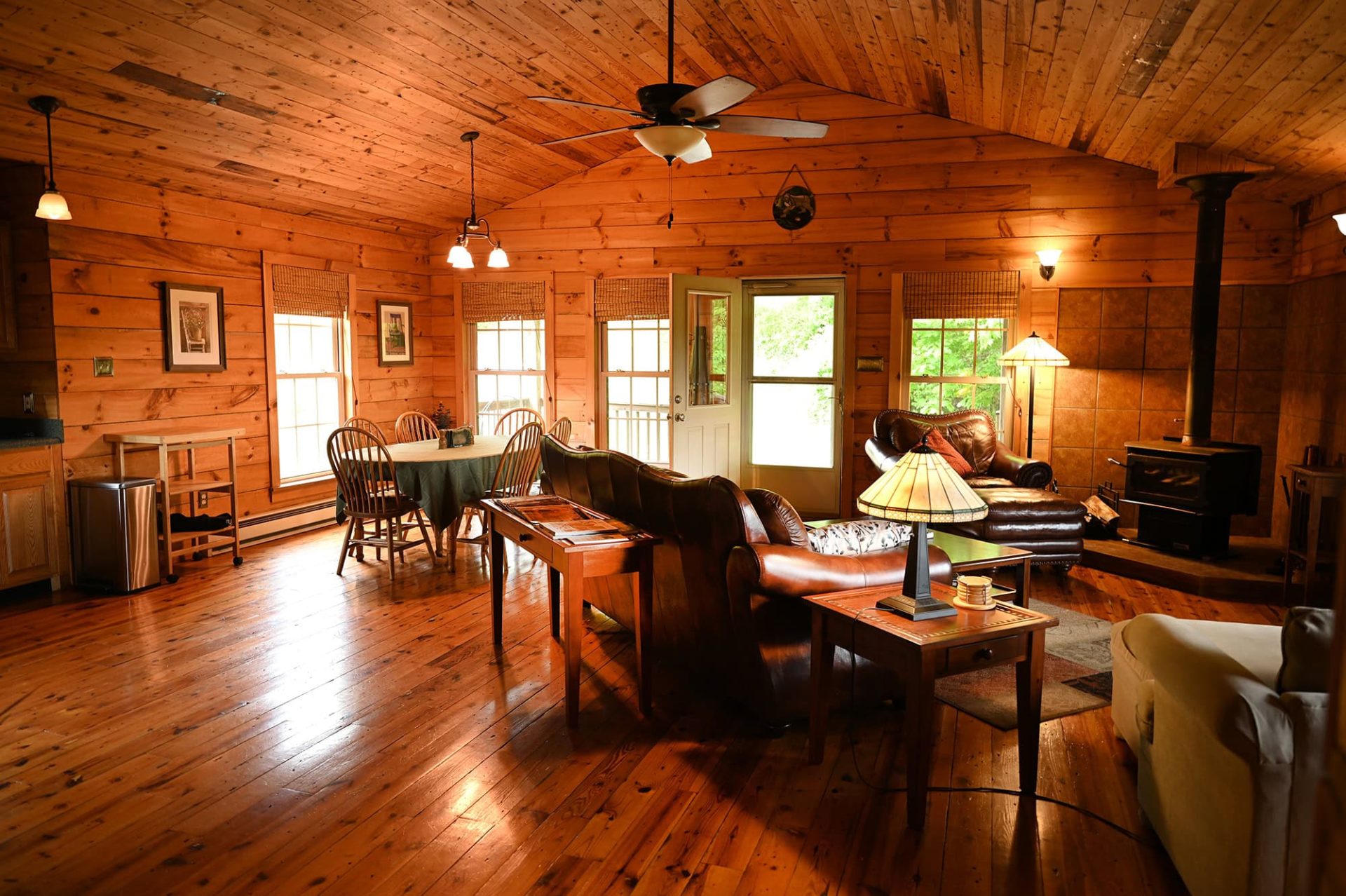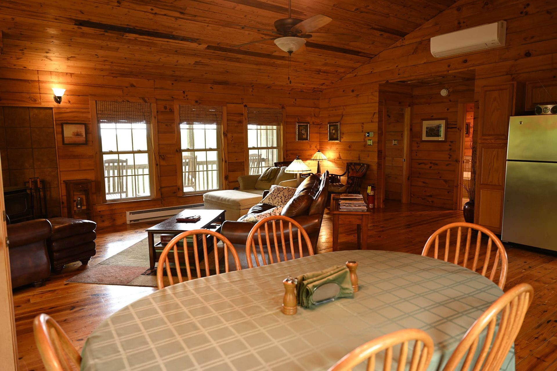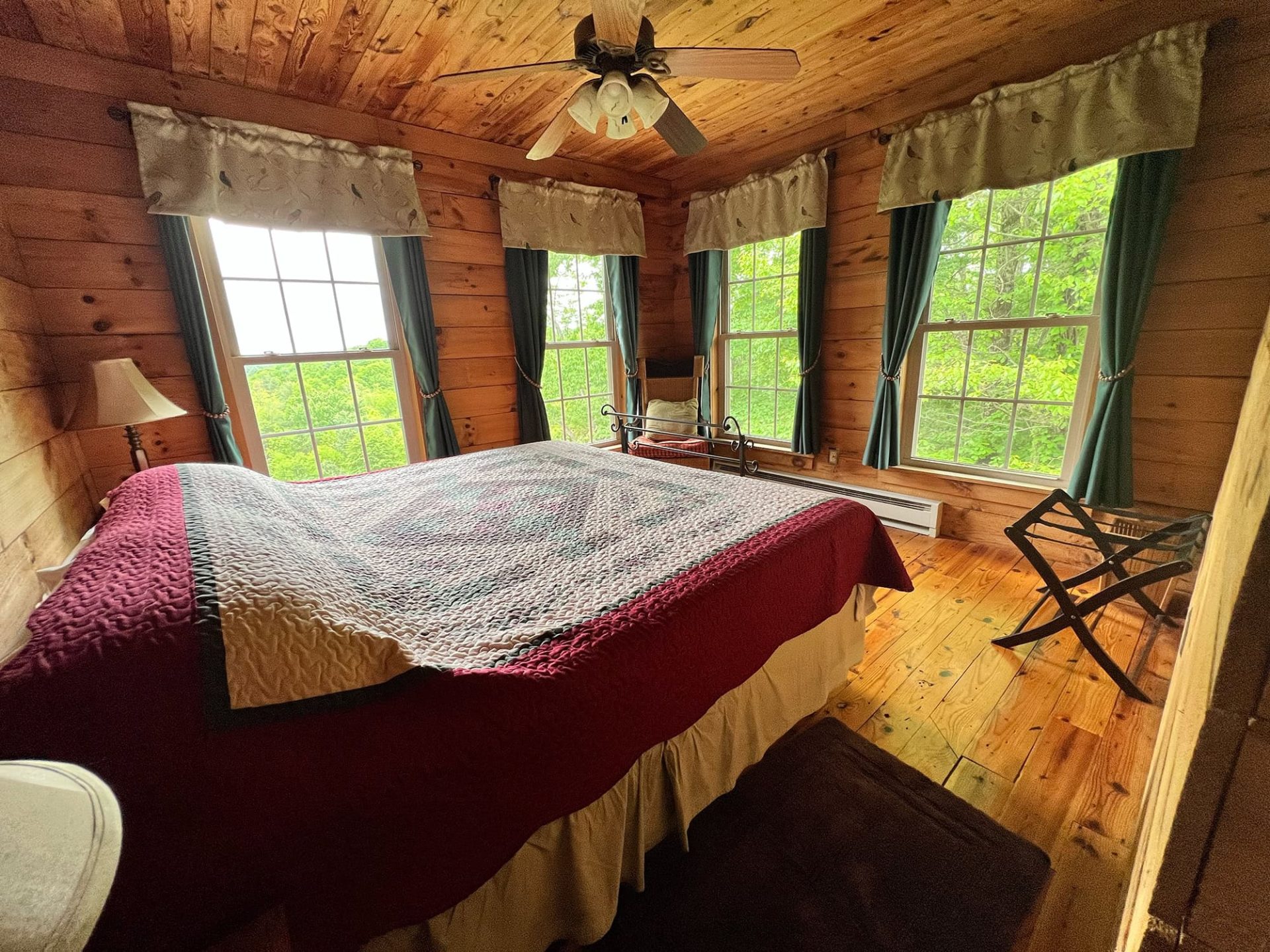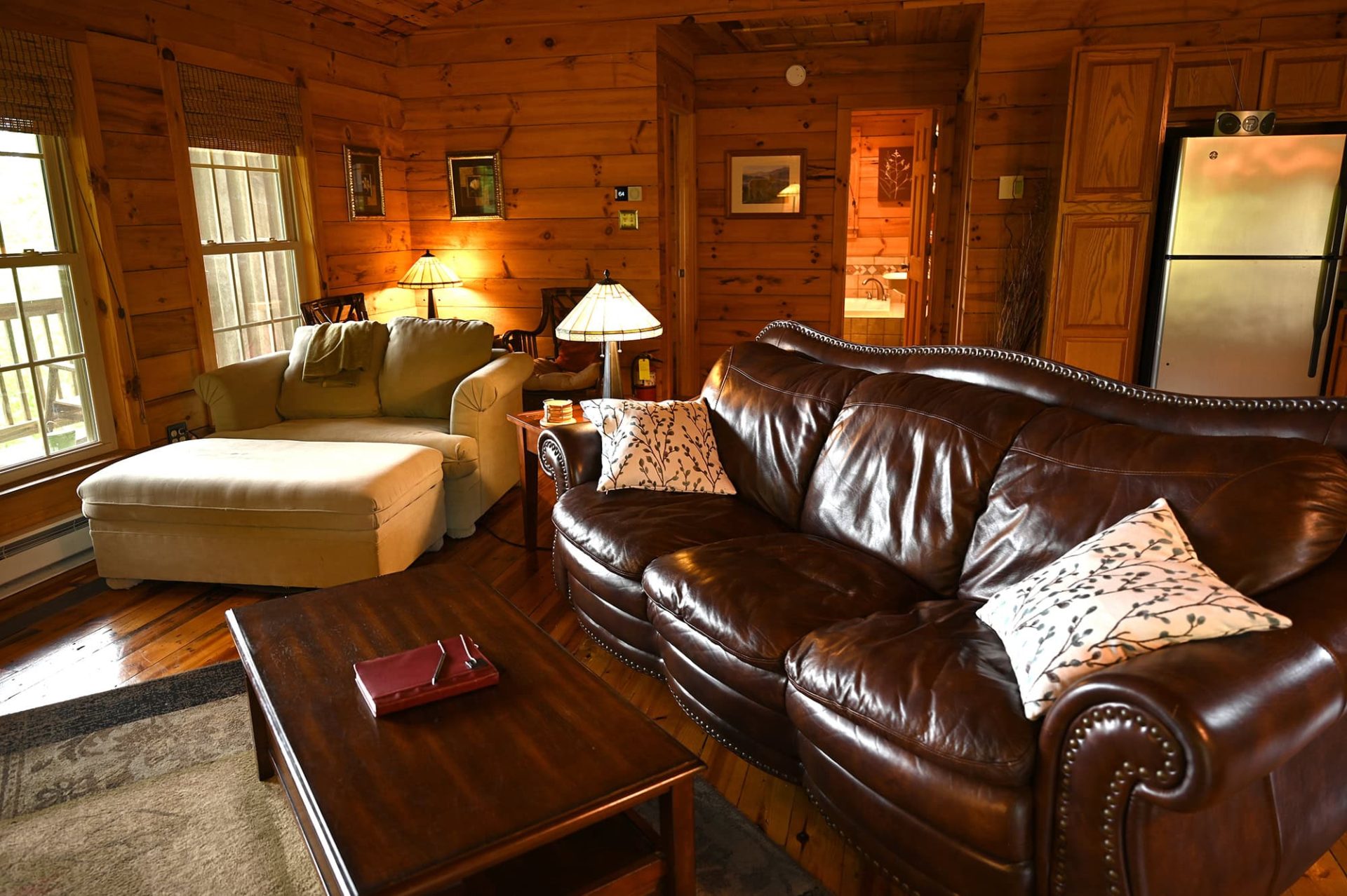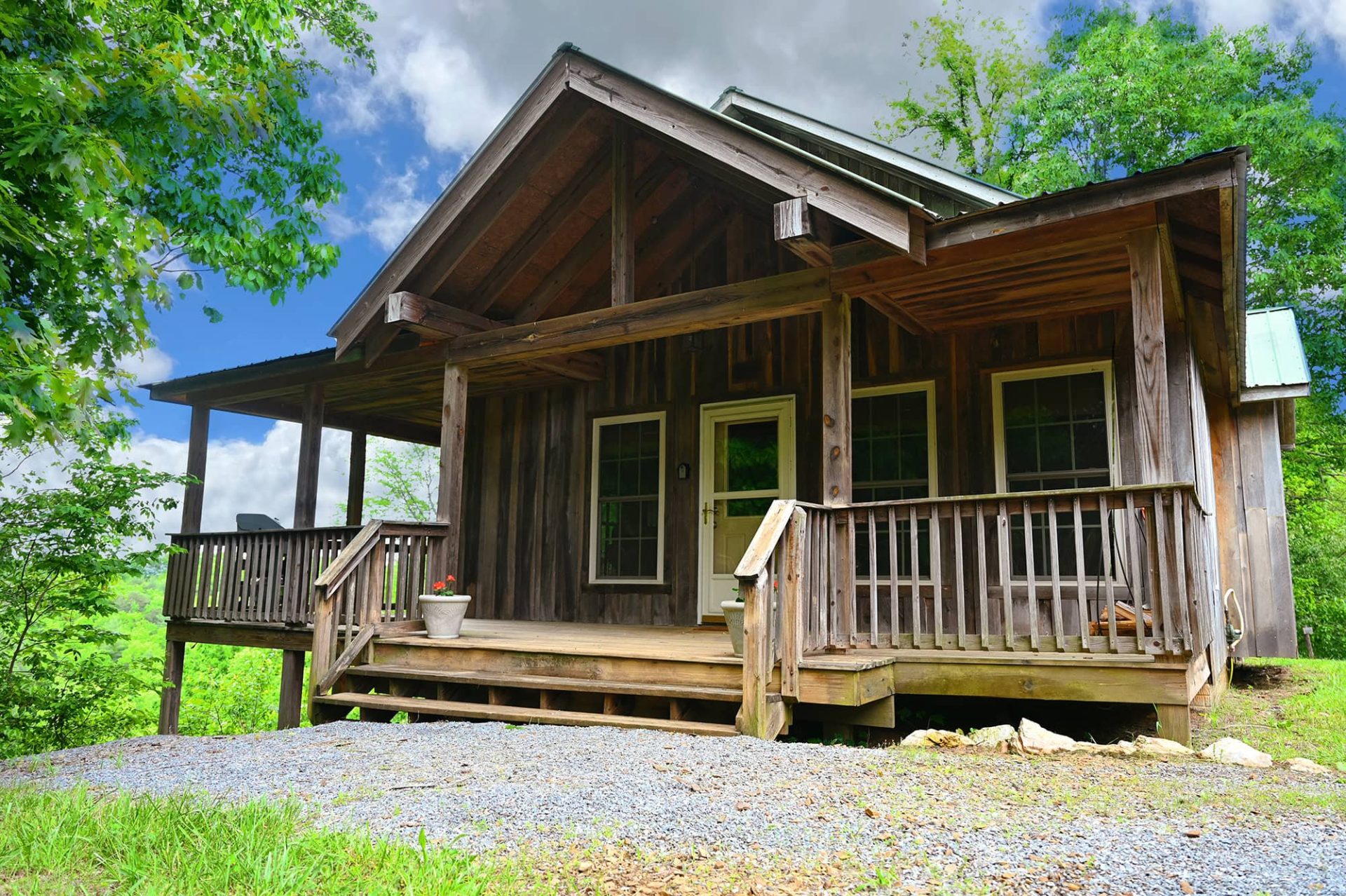 Secluded, quiet and nestled among 80 beautiful acres, the Bobcat Bungalow features a spacious living area with an open-floor plan. Get cozy in front the wood stove or enjoy the views of the Blue Ridge Mountains to the east from the rocking chairs on the side porch. This cabin has 2 bedrooms each with very comfortable king sized beds and one full bath with a hot tub. The kitchen is outfitted with pots, pans, dishware, microwave and coffee maker. We have fast, free wifi if you need to stay connected and miles of hiking trails if you want a quiet get away! Each cabin has an outside fire pit—we’ll even leave some wood for you. Both cabins are powered by a large solar array on the property.